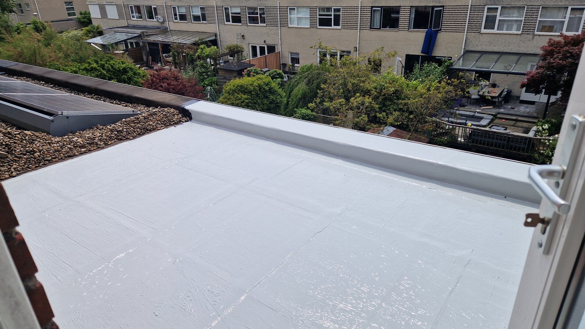 PU Fast is alifatisch, wat betekent dat de coating niet verkleurt door zonlicht. In een lichte afwerking biedt het daarnaast uitstekende cool roof eigenschappen: het dak neemt minder warmte op, waardoor de ruimte eronder in de zomer vaak merkbaar koeler aanvoelt.