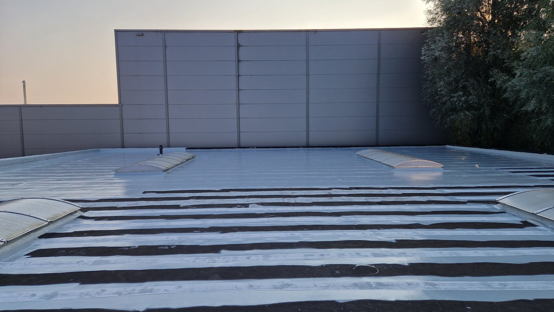 - Afgerond project met een oppervlakte van 2.500 m² op een bitumen dak, waarover geotextiel werd toegepast bij alle overgangen.