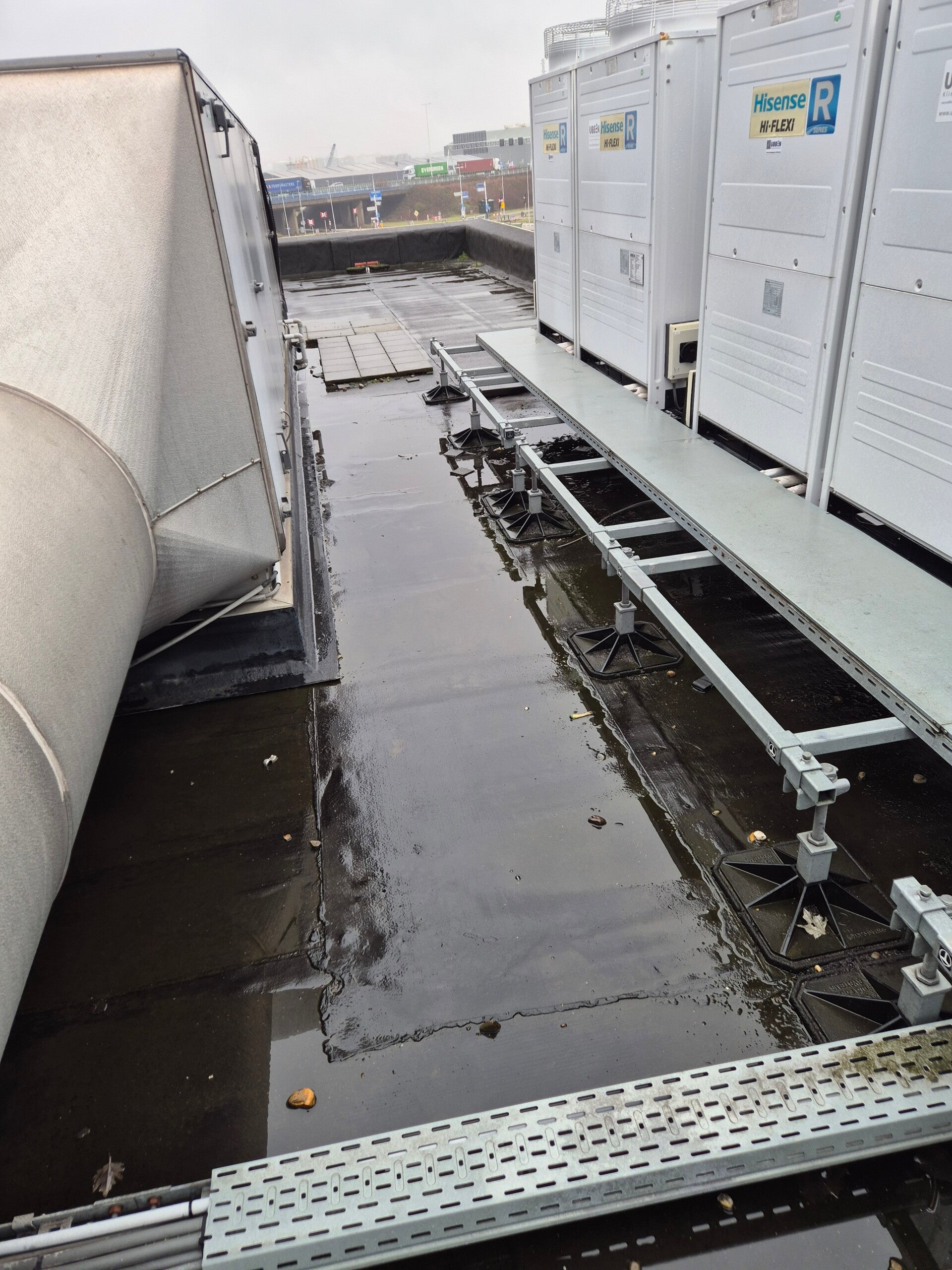 Om deze problemen aan te pakken, hebben we gekozen voor een duurzame oplossing. We hebben de oude dakbedekking overlaagd met polyurea, een hoogwaardige en veelzijdige coating. Deze oplossing zorgt niet alleen voor een significante verbetering van de isolatie, maar ook voor een langere levensduur van het dak.