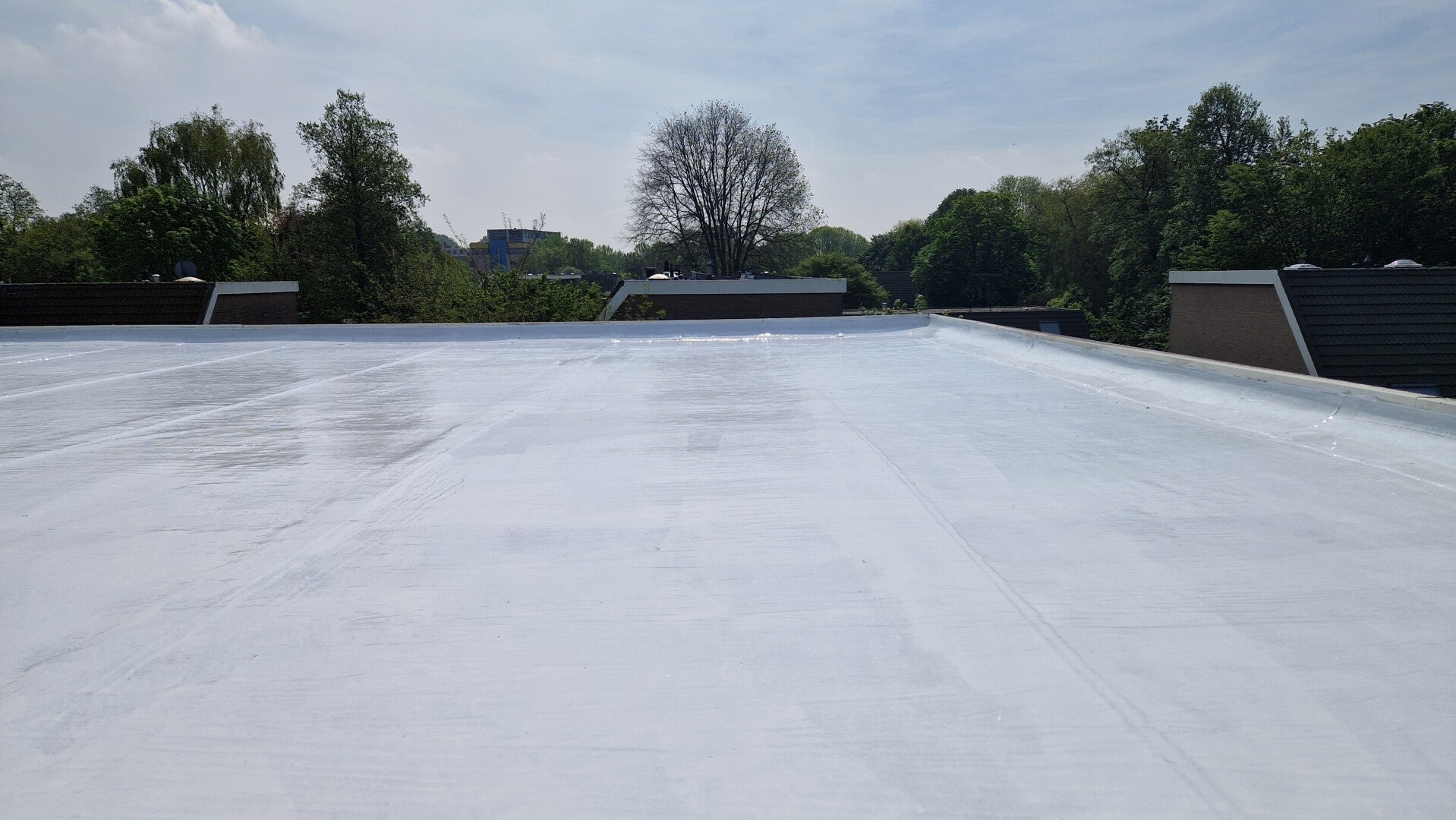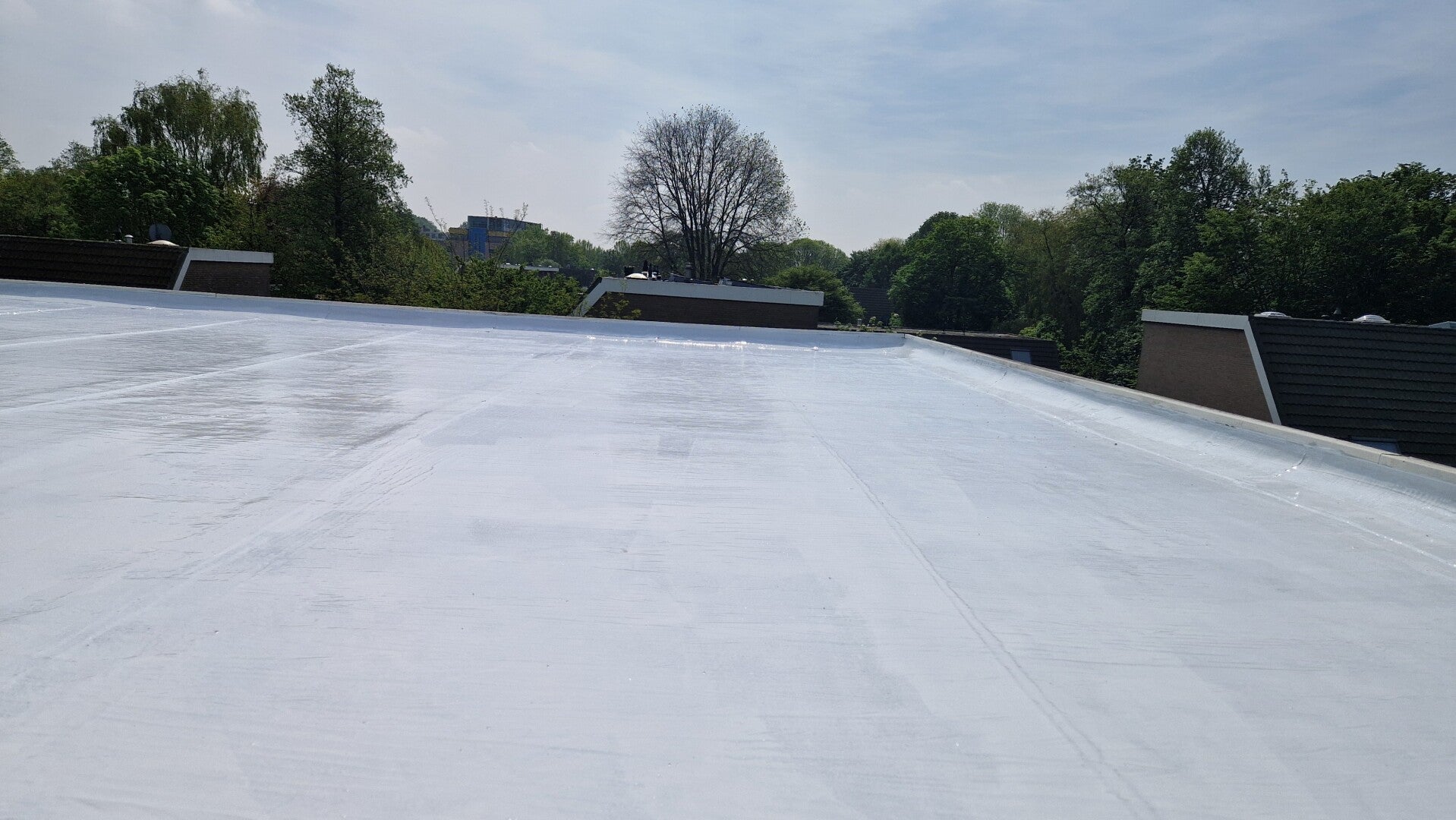 In het historische Gouda hebben we recentelijk een dak van een kantoorpand voorzien van een witte cool roof coating. Deze innovatieve toepassing helpt niet alleen om energiekosten te besparen, maar zorgt ook voor een aangenamere temperatuur in de ruimte gedurende de warme zomermaanden. Door de reflecterende eigenschappen van de coating kan het dak de warmte van de zon weerkaatsen, wat resulteert in een veel koelere werkomgeving. Dit draagt bij aan een vermindering van het energieverbruik voor airconditioning en verhoogt het comfort voor alle medewerkers in het pand.