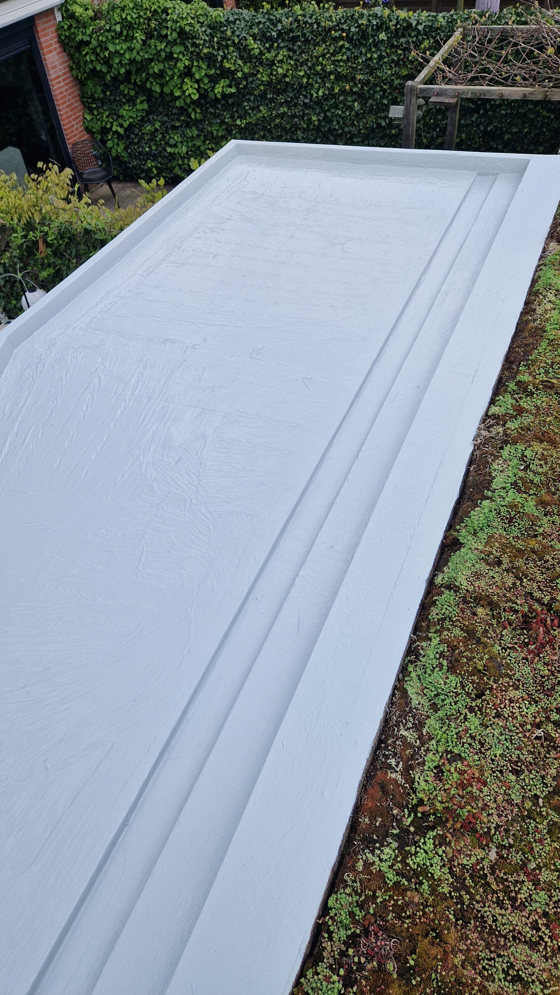 In Waddinxveen, hart van de dorpskern, hebben we een nieuw tuinhuis voorzien van een duurzame polyurea dakcoating. Dit is een uitstekende keuze die niet alleen zorgt voor een lange levensduur, maar ook bijdraagt aan de algehele duurzaamheid van het tuinhuis. Om te beginnen hebben we een hechtingsprimer aangebracht. Deze primer is essentieel voor een goede hechting van de coating. Na het aanbrengen van de primer hebben we een laag coating aangebracht, die de uitstekende beschermende eigenschappen van polyurea benut. Tot slot is het dak volledig voorzien van een geotextiel, wat extra sterkte biedt en verder bijdraagt aan de isolatie. De laagdikte van de coating bedraagt 2,5 kg per m2, wat garant staat voor een solide en duurzame afwerking. Met deze aanpak hebben we een tuinhuis gecreëerd dat niet alleen esthetisch aantrekkelijk is, maar ook functioneel en bestendig tegen de elementen.